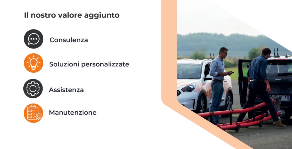 Dalla vendita degli strumenti , al supporto onsite per allestimento veicolo, esecuzione test , e manutenzione.